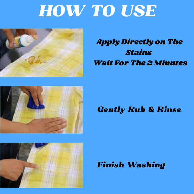 Using the product is simple and convenient. Just apply it directly to the clothes, rub lightly, wait a few minutes, and rinse or wash as usual. Its user-friendly design allows for quick, effective cleaning with minimal effort, making it an essential solution for any household looking for hassle-free stain removal.